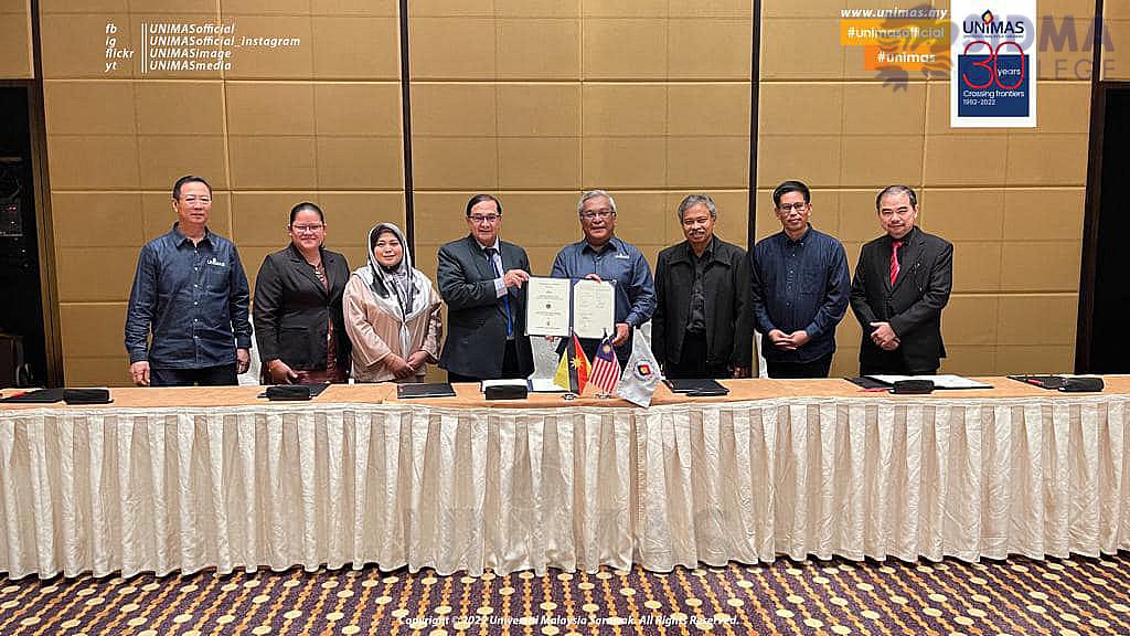 Signing ceremony at Grand Millennium Kuala Lumpur were Prof Dr Ahmad Hata Rasit, Deputy Vice-Chancellor (Academic & International), Prof Datu Mohd Fadzil Abd Rahman, Assistant Vice-Chancellor (Leadership and Development), Tuan Haji Mazlan Kiflie, Treasurer, Prof Dr Puah Chin Hong, CEO of UNIMAS Business School and Mrs Nur Atiqah, CEO of SIDMA College, witnessed by Prof Datuk Dr Mohamad Kadim Bin Suaidi, Vice-Chancellor of Universiti Malaysia Sarawak (UNIMAS) with Prof Dr Mornie Kambrie, Chairman of SIDMA College.